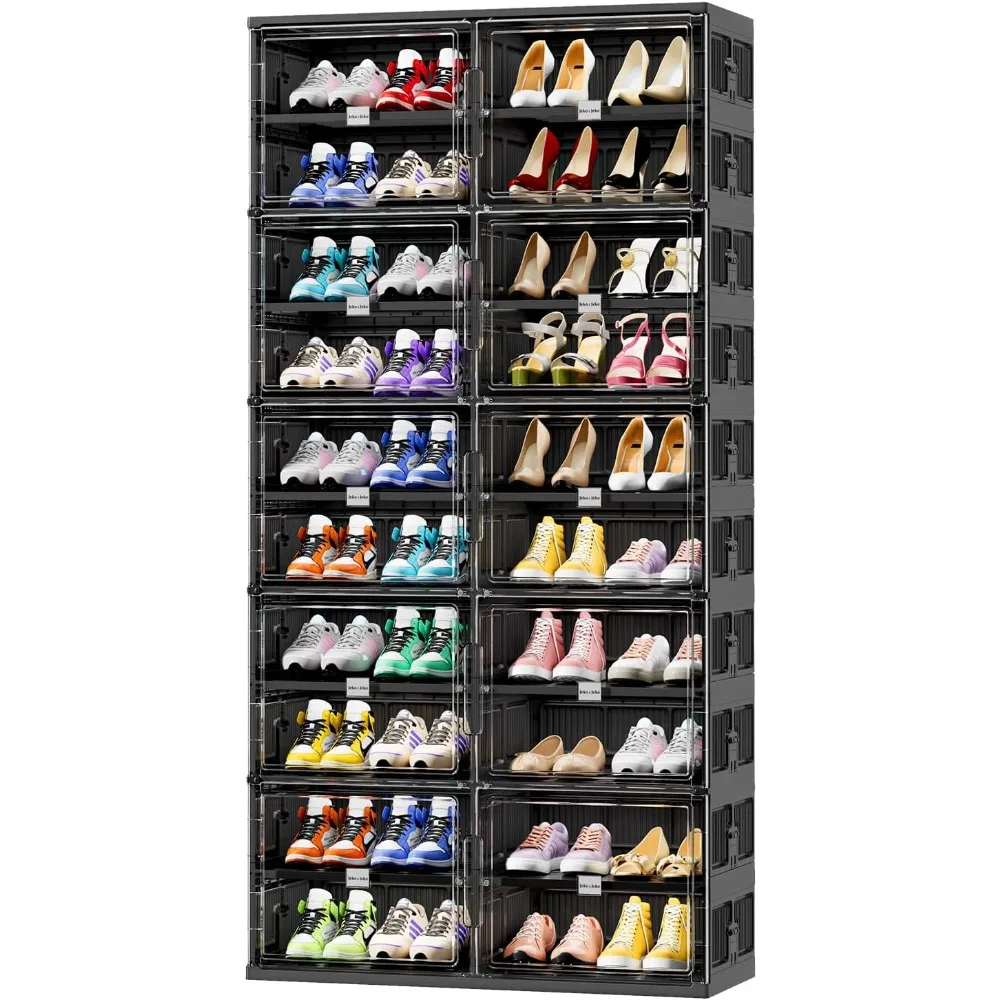 Magnetic Clear Door: Each box comes with a transparent PET magnetic door that allows you to quickly view and access your shoes while keeping them dust-free. The strong magnetic closure ensures a secure and neat look.