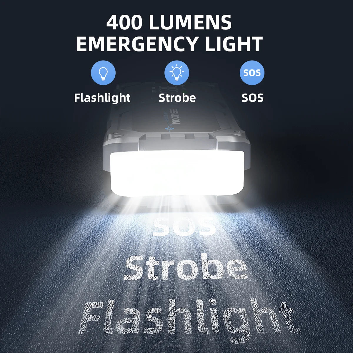 400 Lumens Super Bright LED Lights: Featuring three LED light modes—Illumination, Flash, and SOS—this car battery charger jump starter provides exceptional visibility in low-light environments. The 400 lumens light helps you see clearly and includes strobe and SOS modes for emergency signaling, making it an essential tool for any situation.