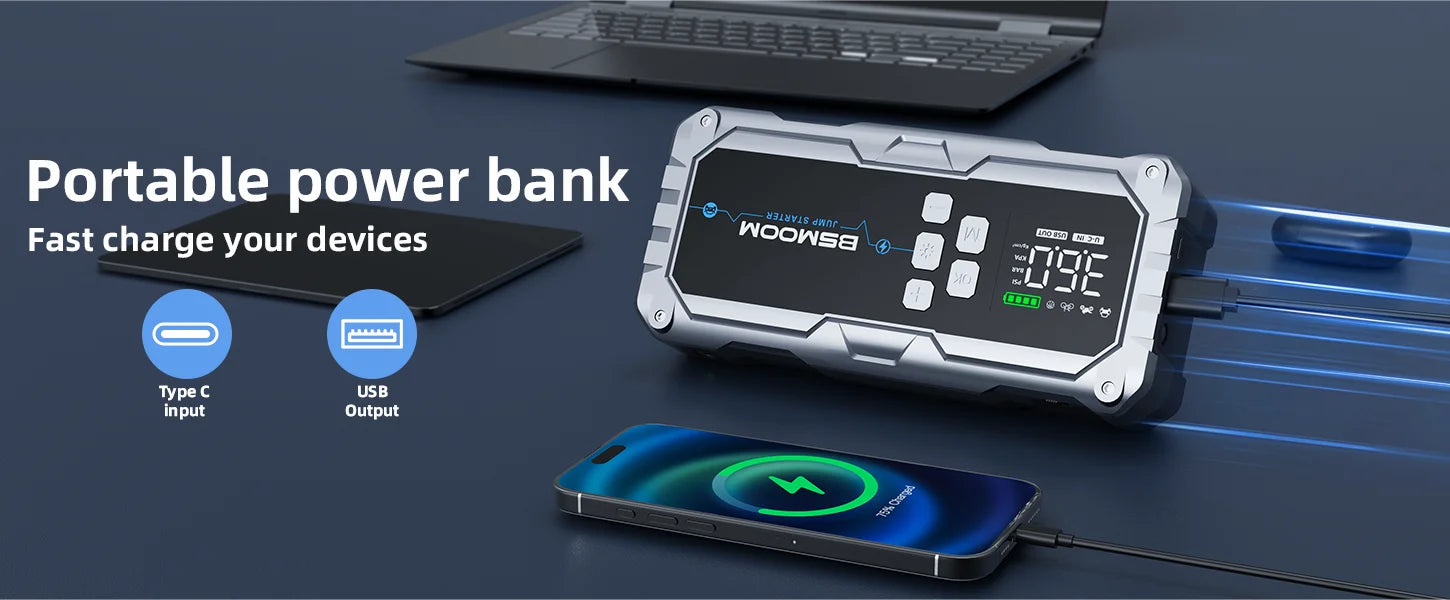 Bad Weather, Car's Savior: Designed to perform reliably in extreme temperatures, this BSMOOM jump starter battery pack works effectively in conditions ranging from -4°F to 140°F. It provides robust starting power even in harsh winter weather, addressing common issues of vehicles not starting due to cold temperatures.