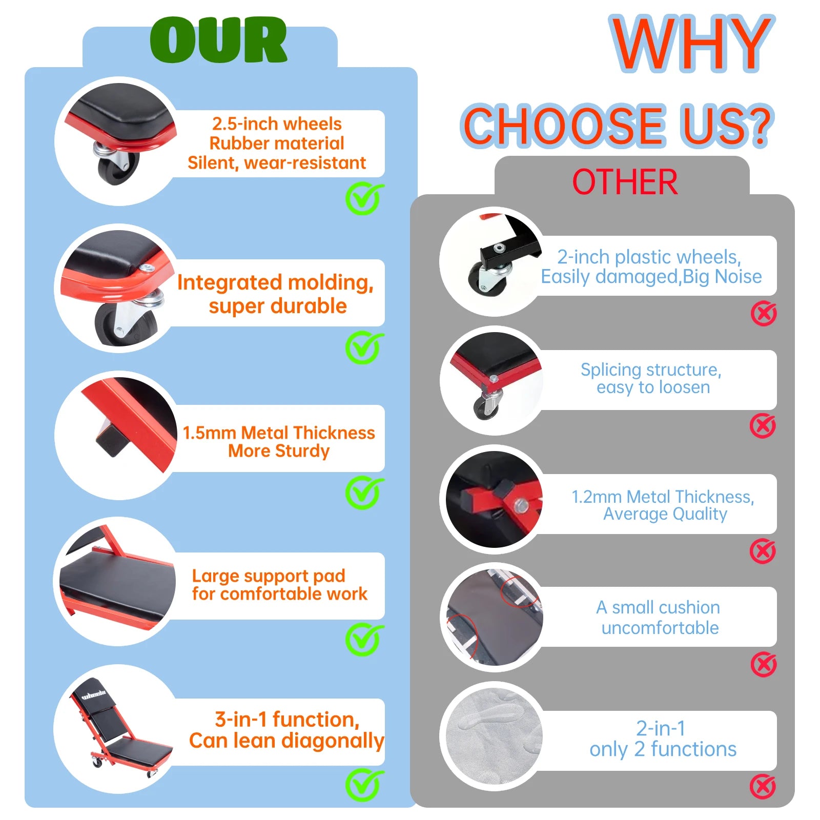 Reimagine your repair workflow with the Hign-concerned 3-in-1 rolling mechanic creeper Z-seat—where versatility meets comfort.