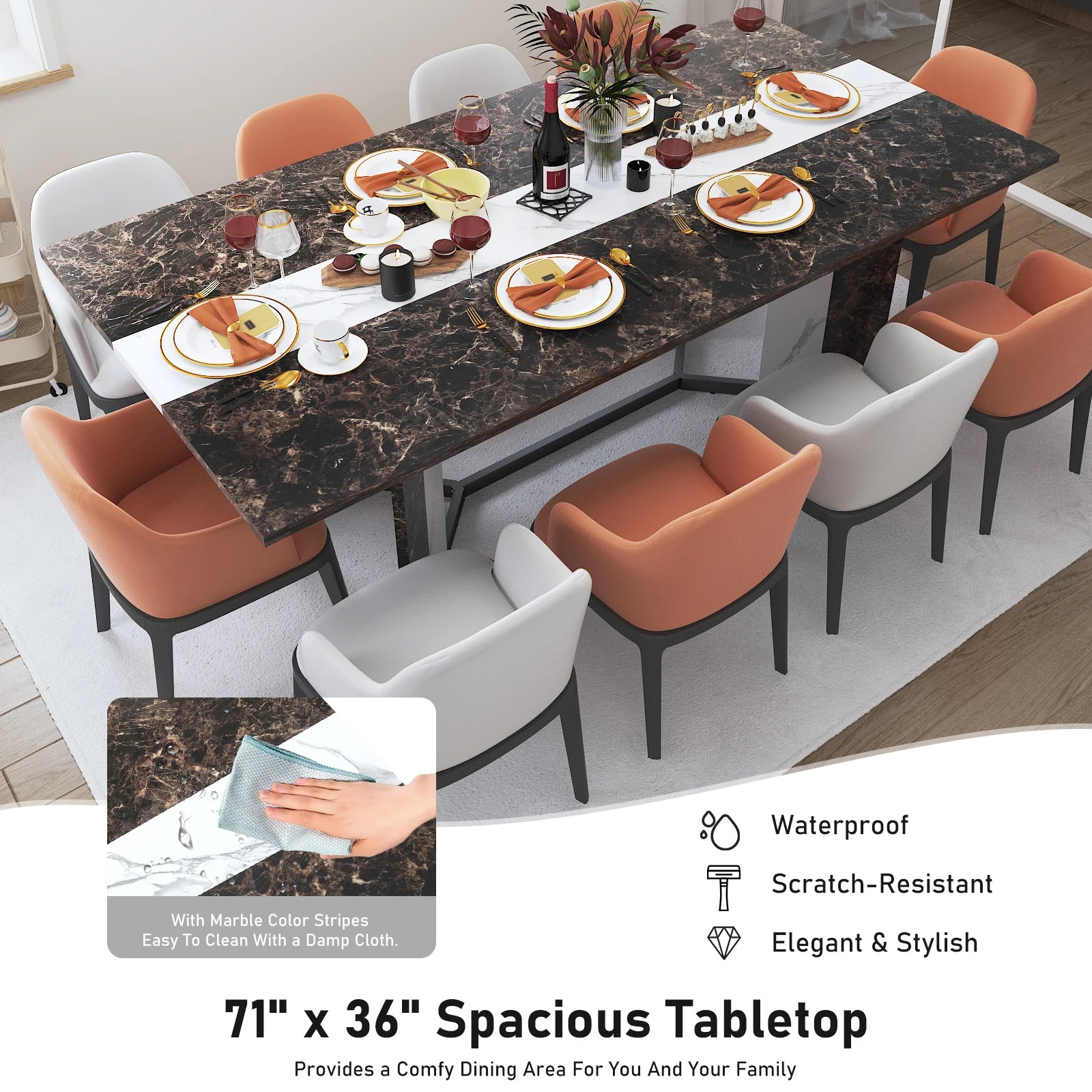71In Large Rectangular White Dining Table for 4 5 6 8 10 People, Family Dinner Table w/Marble Color, Wood Tabletop, Metal Leg