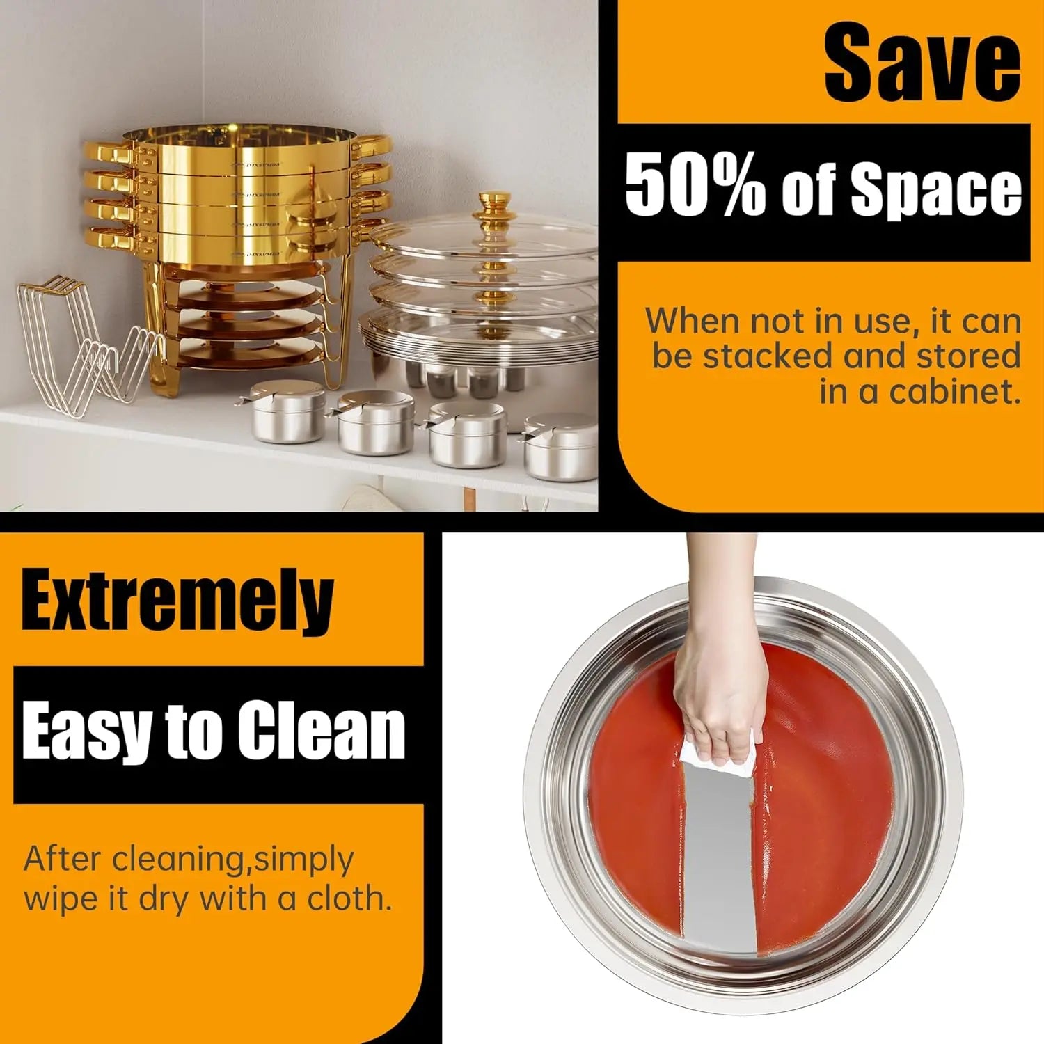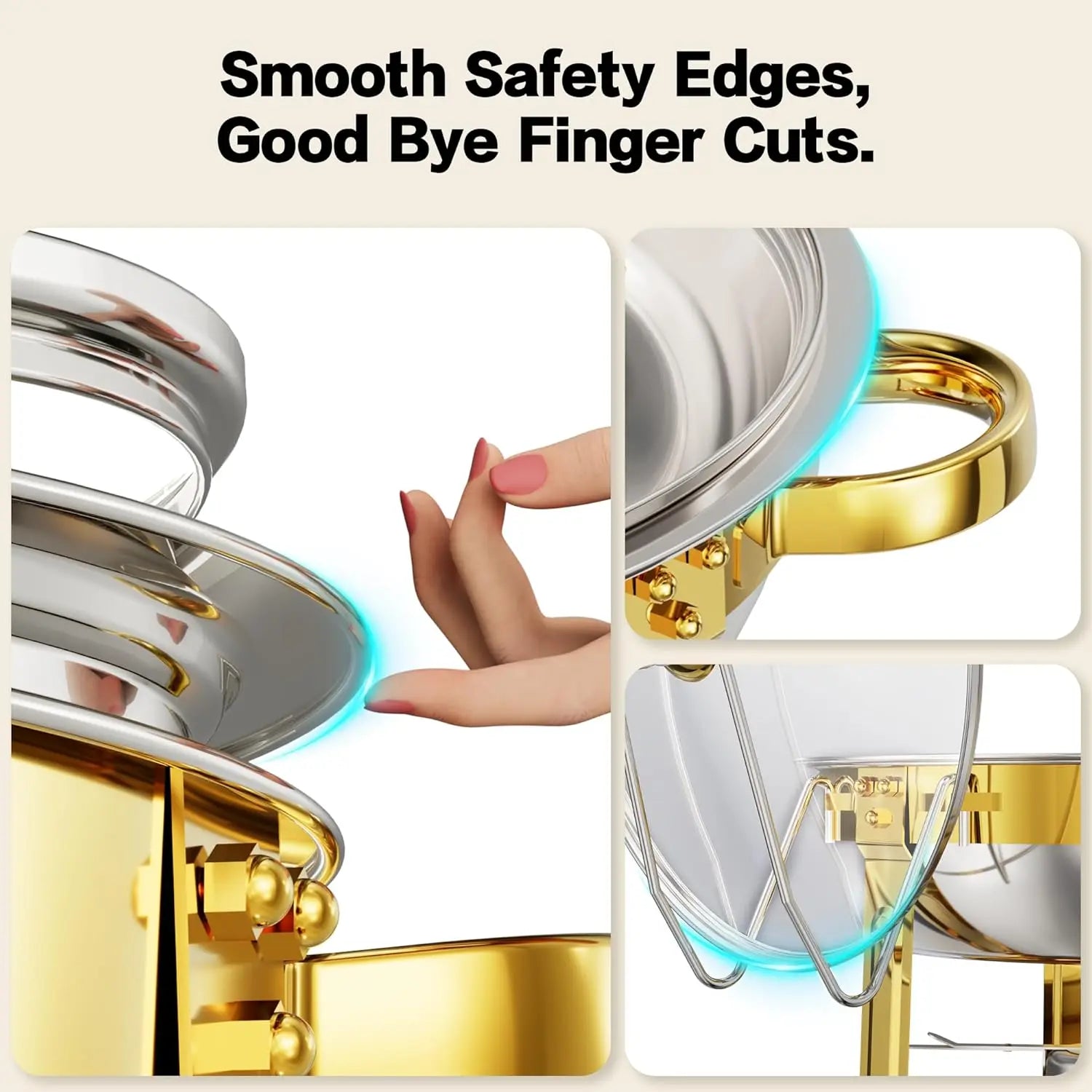 - Goodbye Finger Cuts: Designed with user safety in mind, these chafers and buffet warmers sets are made from high-quality, food-grade stainless steel and feature smooth, rounded edges. Precision rolling and multi-stage polishing eliminate sharpness, ensuring safe handling and easy cleaning