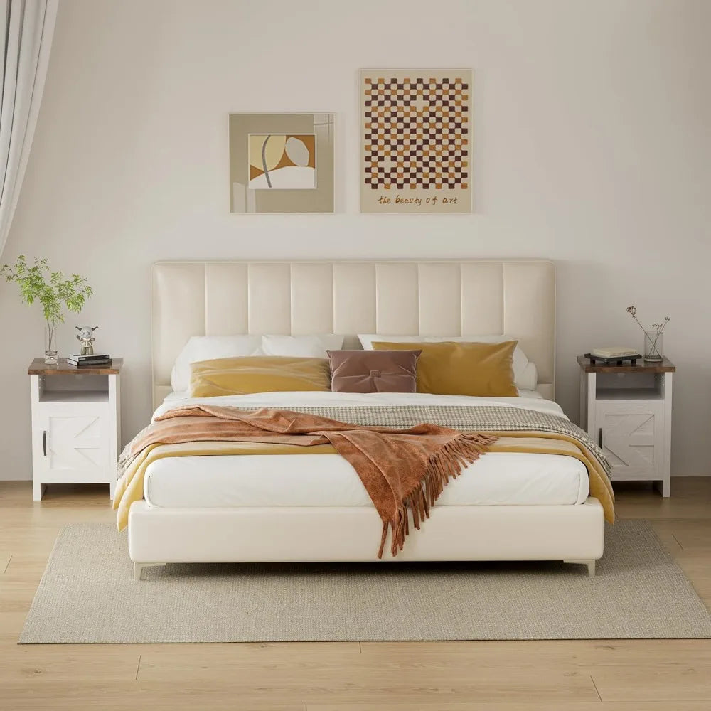 Frame Nightstands Set With Storage Shelf And Barn Door