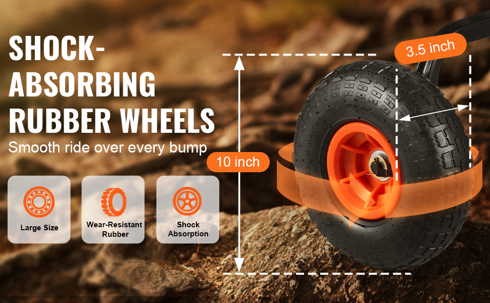 Large Tire Size: With ø255mm/10" rubber tires, the yard cart provides excellent shock absorption, navigating uneven garden terrain or grassy slopes, ensuring smooth transport.